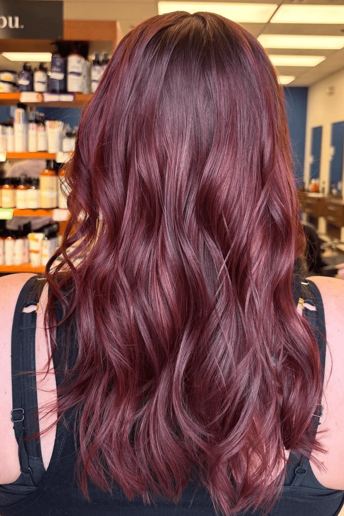 I usually build this look with a layered tone-on-tone approach, starting with a deep auburn base and adding a plum-red gloss over the top. It reflects best under warm light and adds a little mystery to any style. To keep the vibrancy from fading too fast, use a sulfate-free shampoo and try air-drying or diffusing with a low-heat setting.