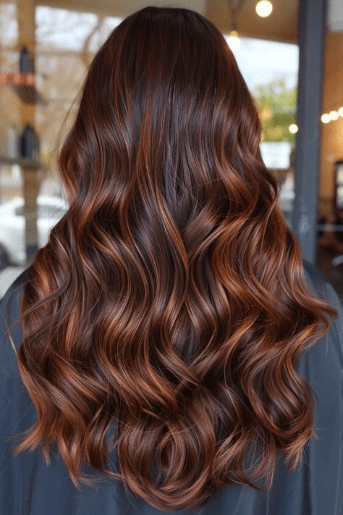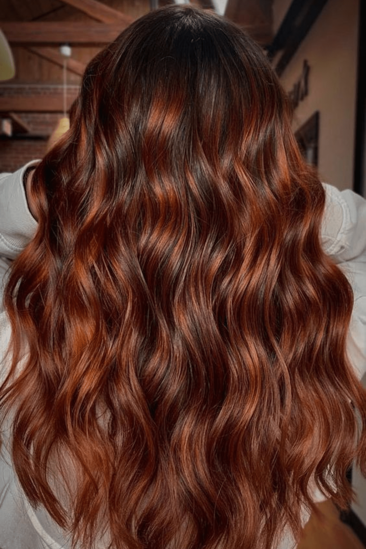 This is my go-to for clients who want movement and versatility. Long layers help the light reflect off different parts of the hair, and face-framing pieces draw attention to your best features. Pair this with cherry auburn or cinnamon lights, and you’ve got instant softness and glow.