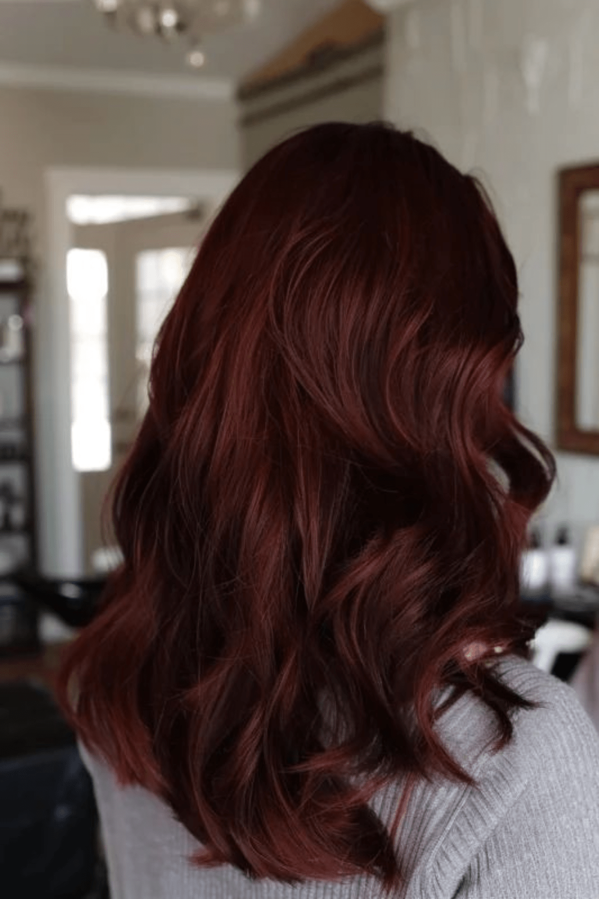 In the salon, I usually create it by adding a red-violet gloss over dark brown hair or weaving in cherry-toned lowlights. It looks stunning when curled or waved, and it reflects light beautifully on smooth finishes. To preserve the berry hue, I always recommend a color-safe shampoo, a red-depositing conditioner every other week, and a heat protectant when styling.
