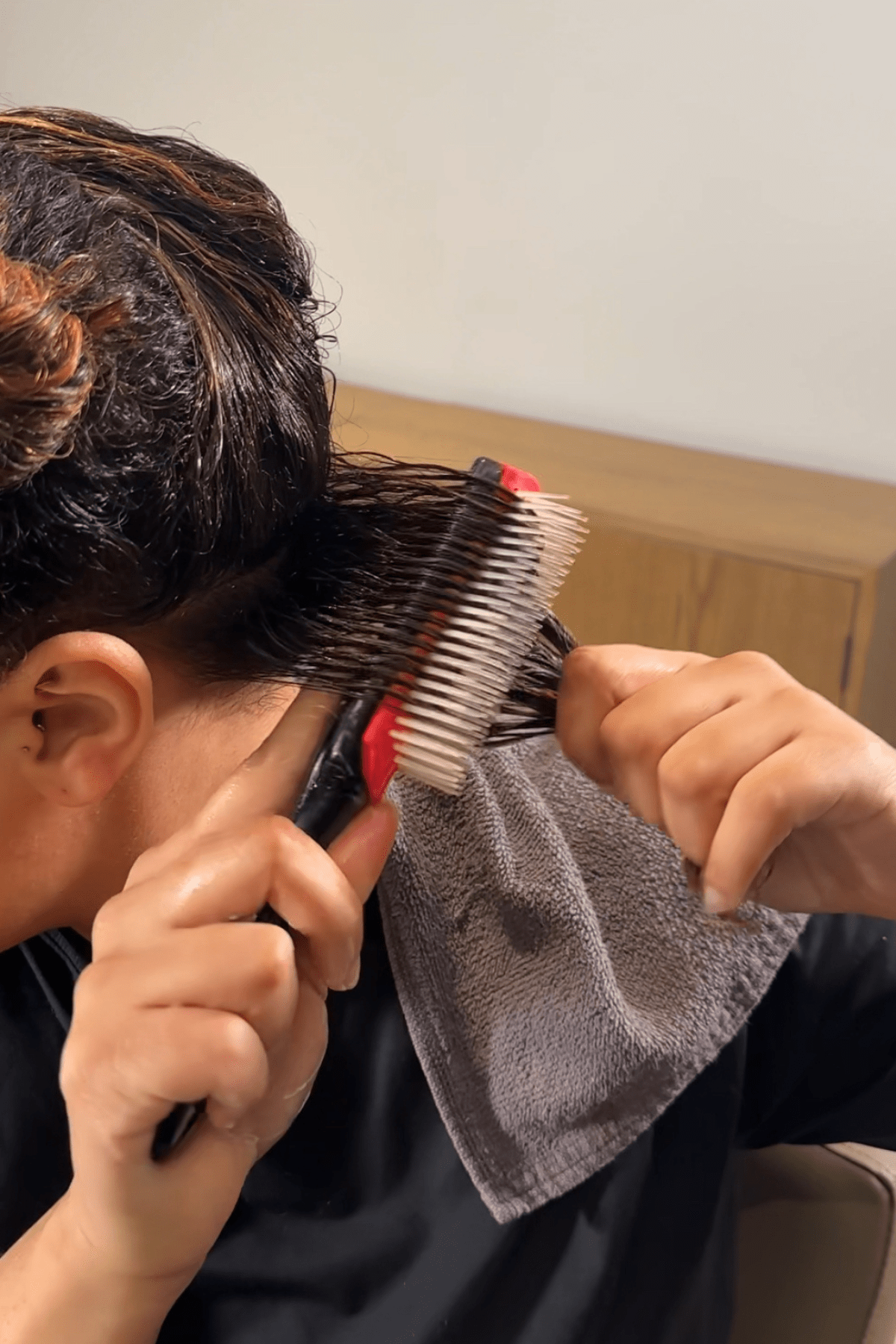 Finger-coil or scrunch (optional): If you want extra definition, follow the brush pass with a quick finger-coil or light scrunch before moving to the next section.