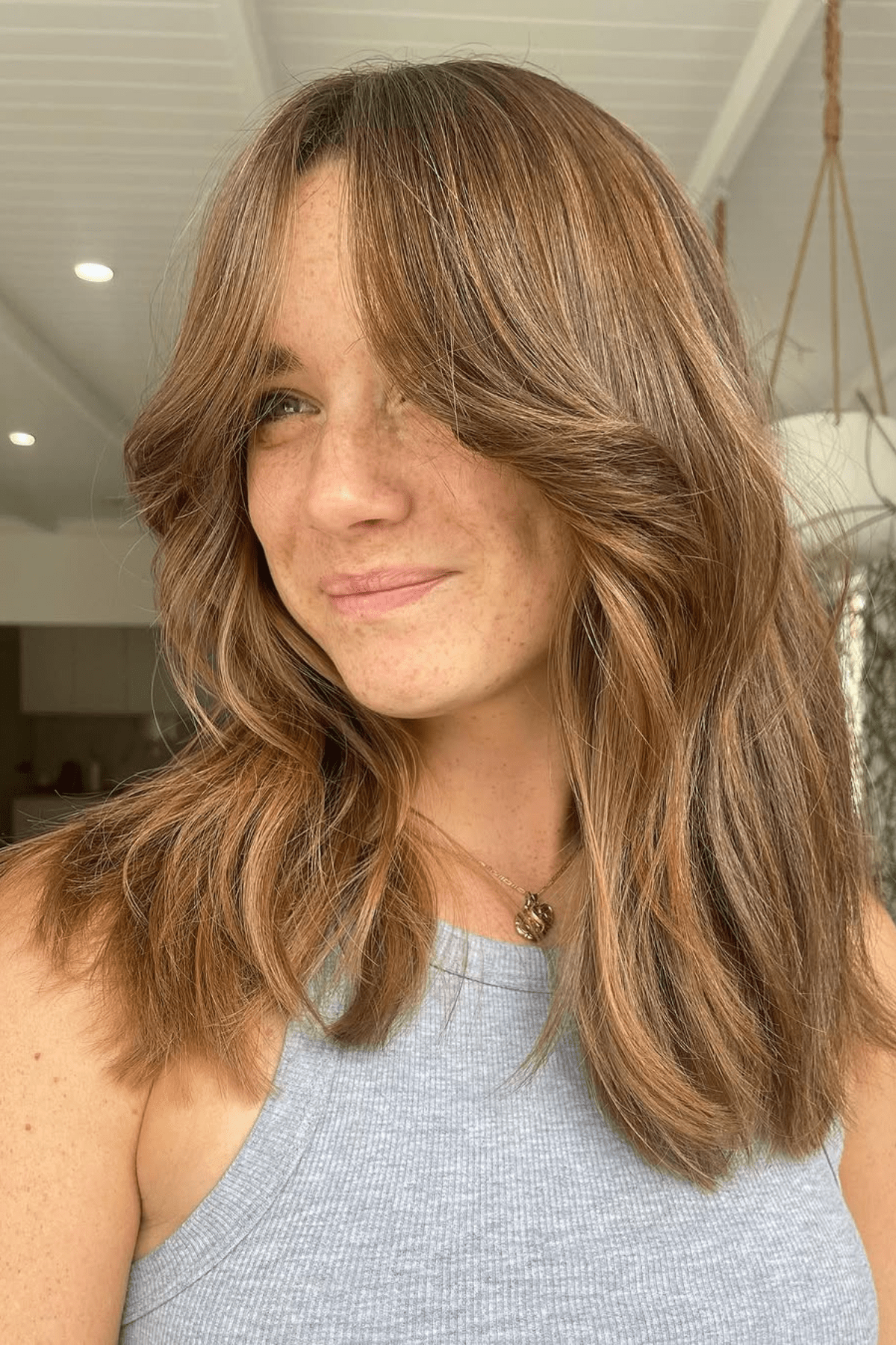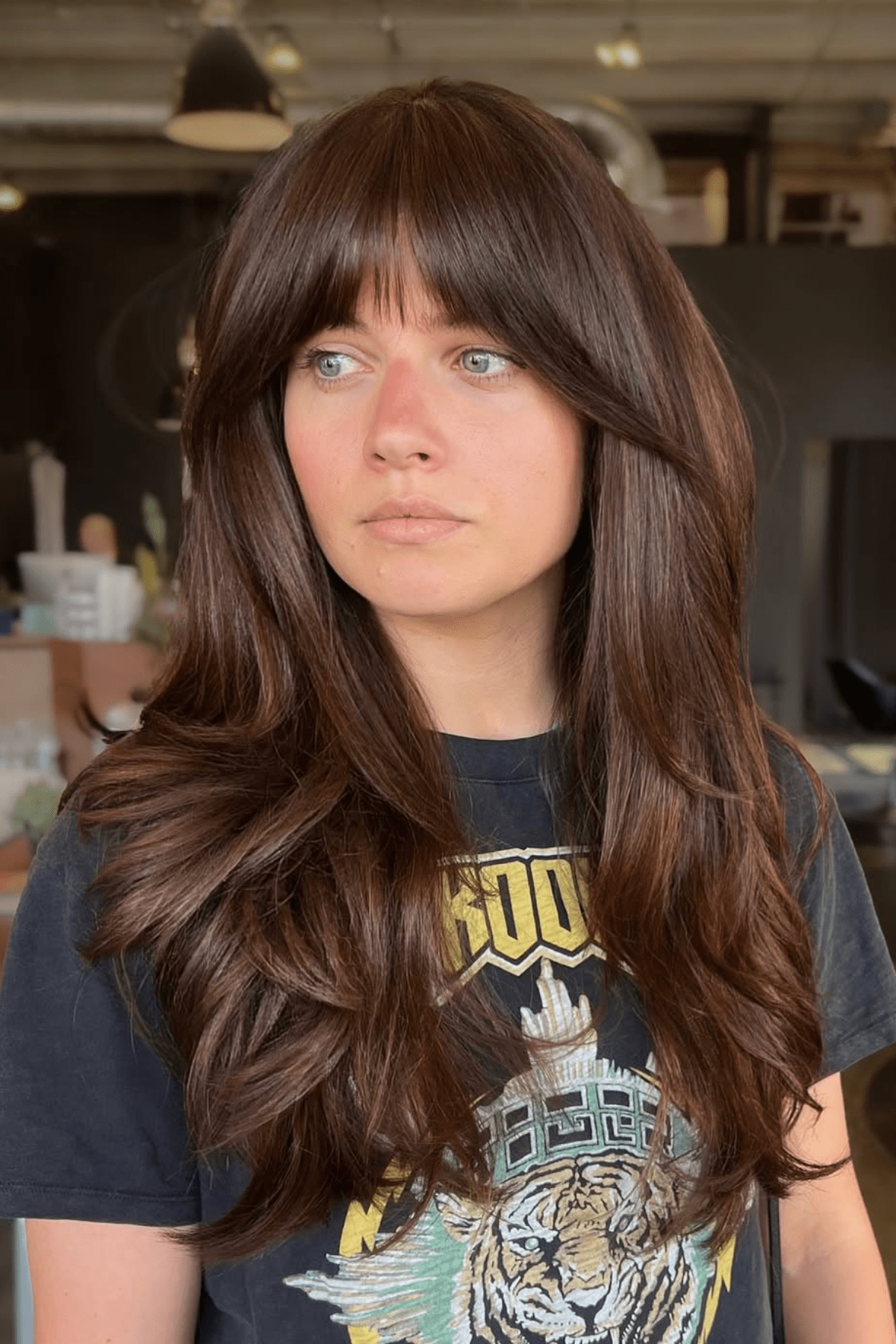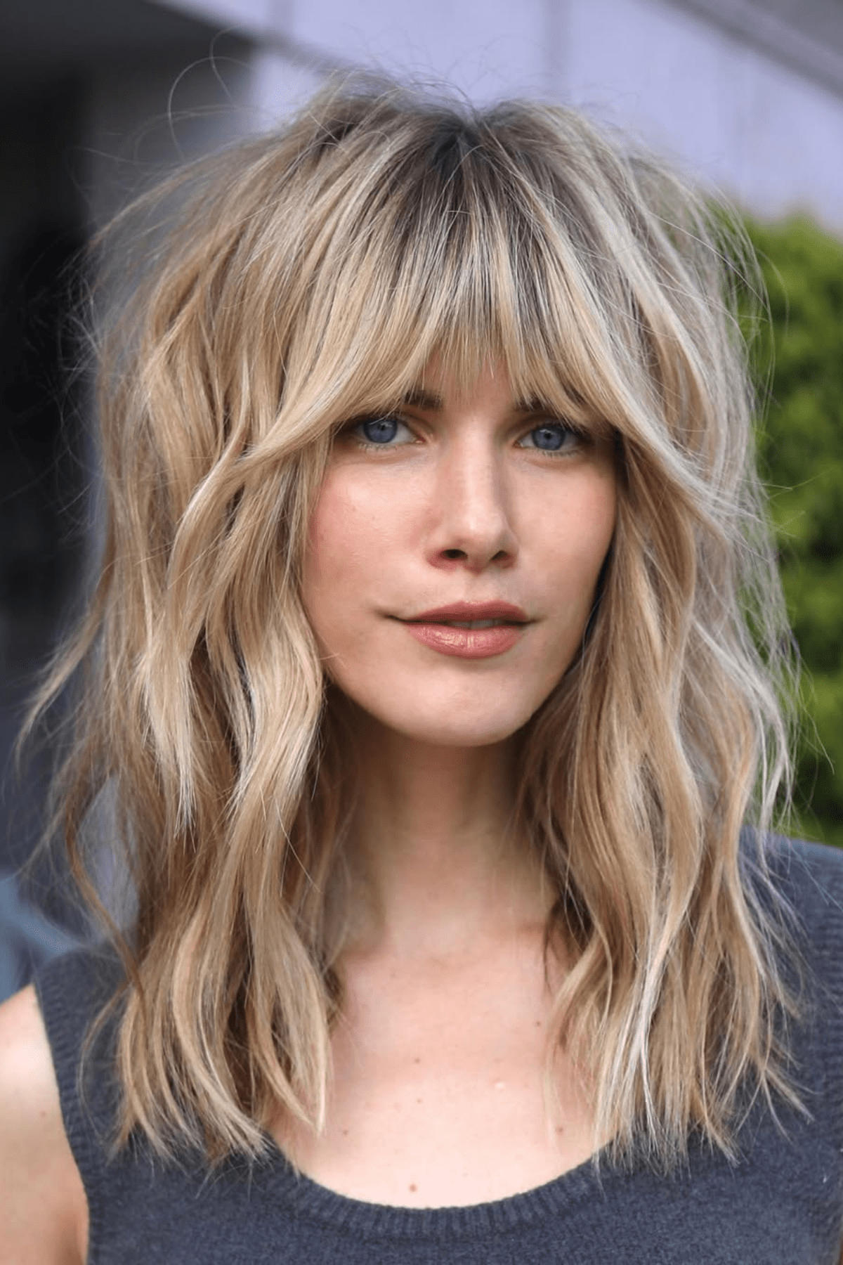 This cut is like instant cool-girl energy. Layers start high, breaking up bulk and encouraging natural wave or curl to form into soft, separated pieces. The fringe blends seamlessly into the face frame, making it low-maintenance and endlessly flattering.