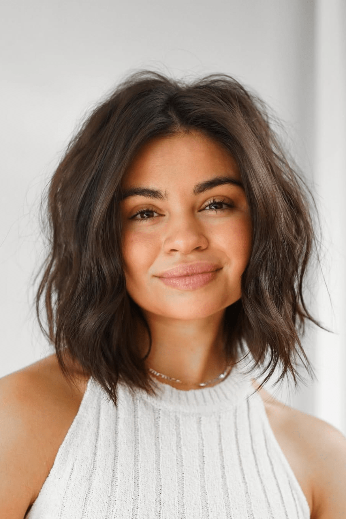 Think chic and airy, not stiff and boxy. This bob hits between the jaw and collarbone, with feathered ends that let your texture do its thing without puffing into a solid wedge. By skipping the harsh, blunt line, you get swingy movement that feels effortless, even on humid days.