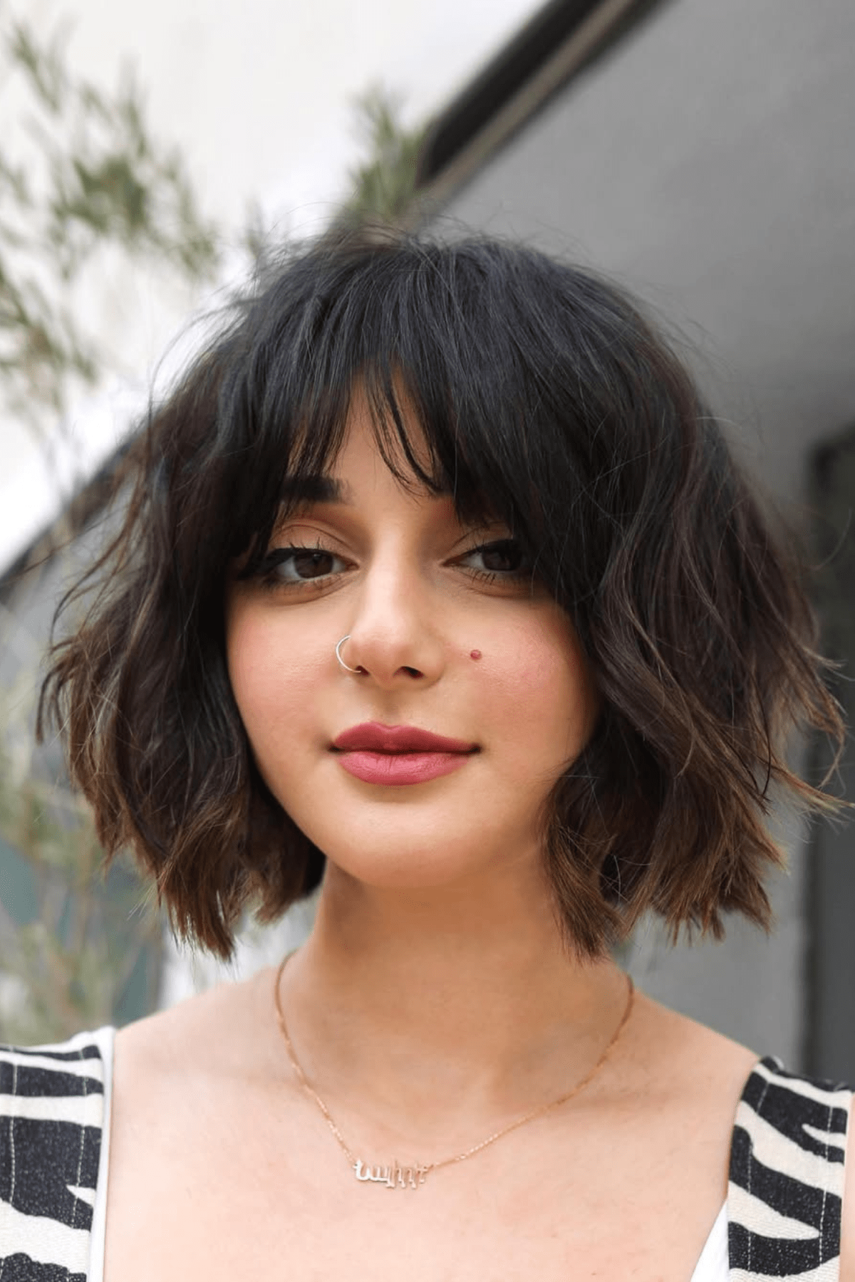 The ultimate “French girl bob”, but with a gentle, frizz-friendly twist. It skims the jawline and has a soft fringe that melts into the rest of the cut; no blunt, heavy bangs here. The result is face-framing without the weight, making your hair look fuller but not puffier.